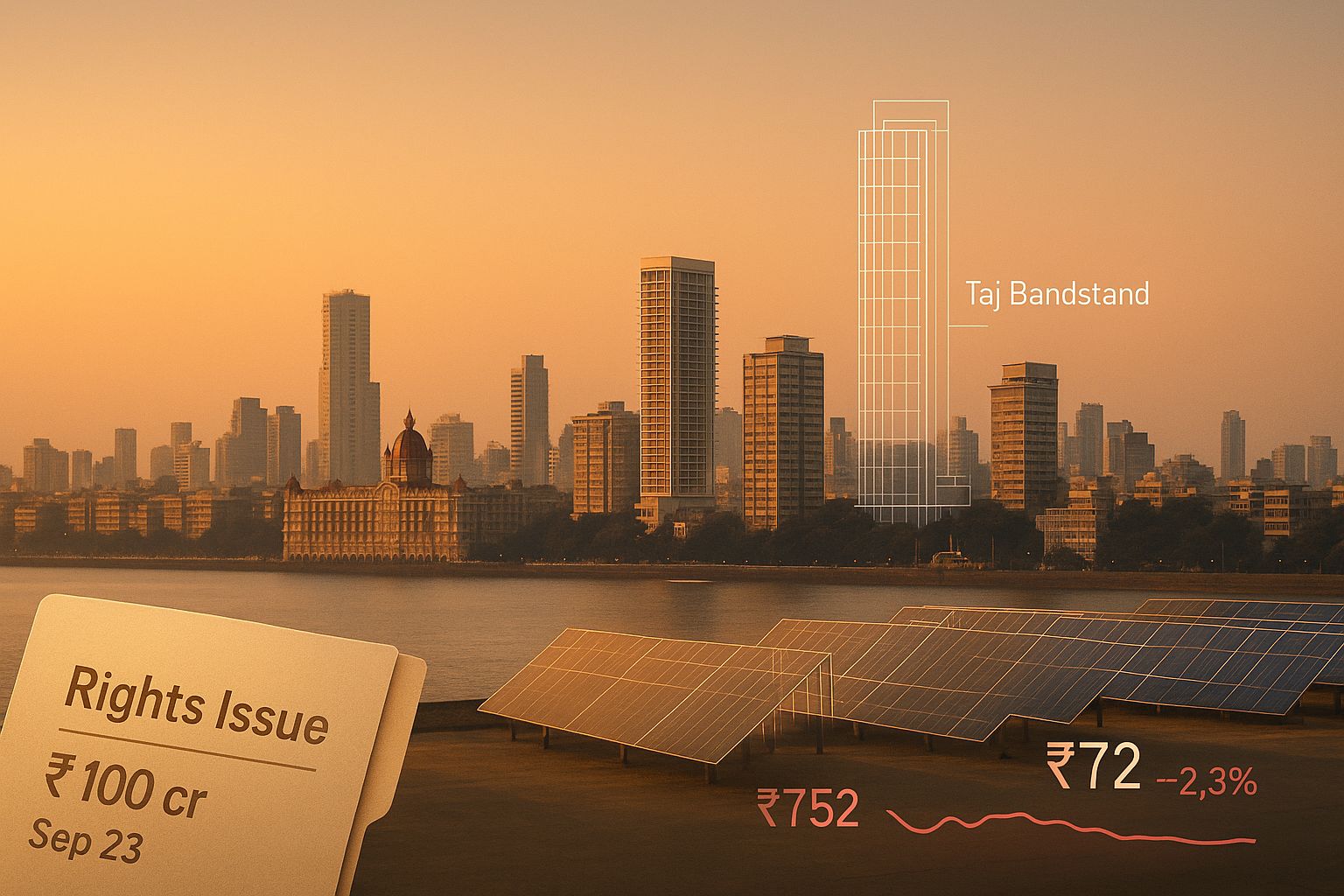 IHCL invests ₹100 cr via rights issue into Taj Bandstand SPV: A funding step for the marquee Mumbai project; the stock ended ~2% lower.