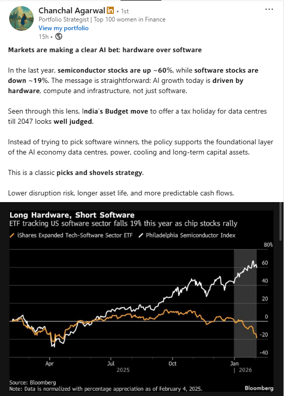 Global tech risk-off spilled into India: Overseas AI capex worries kept IT heavyweights under pressure, pulling the index despite stable domestic macros.