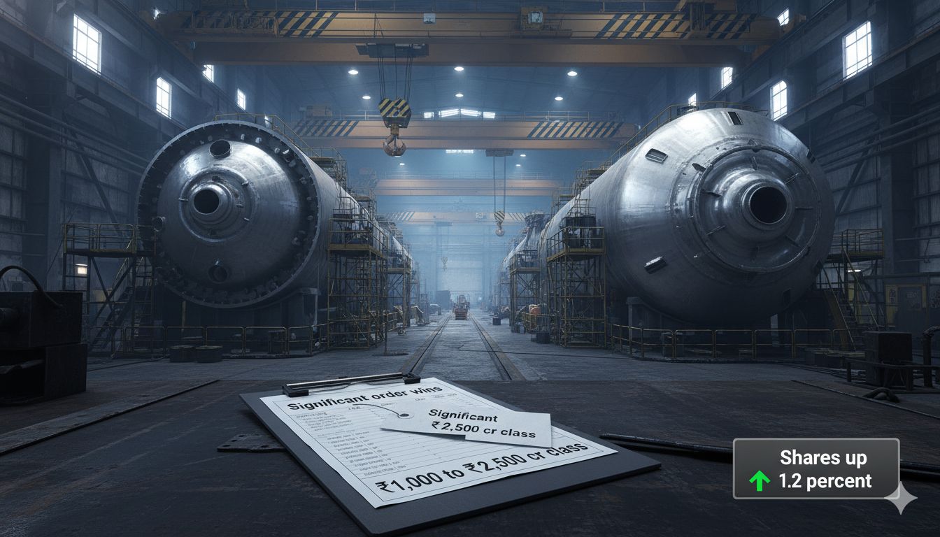 L&T: ‘Significant’ order wins. Heavy Engineering bags ₹1,000–2,500 cr class orders; shares up 1.2%.