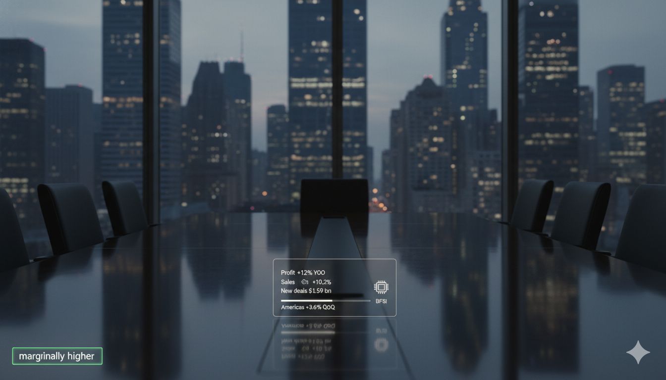 Financial performance: Net profit +12% YoY; sales +10.2%; new deals $1.59 bn (slightly below Q1 but above LY).
