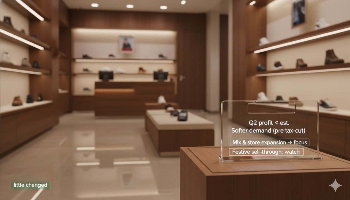 Financial performance: Q2 profit below estimates on softer footwear demand; commentary cited pre-tax-cut pause.