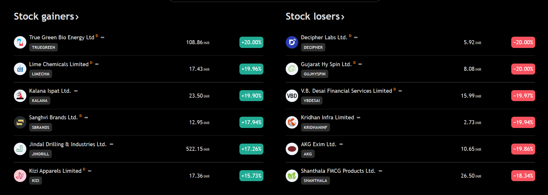 Top Gainers & Losers