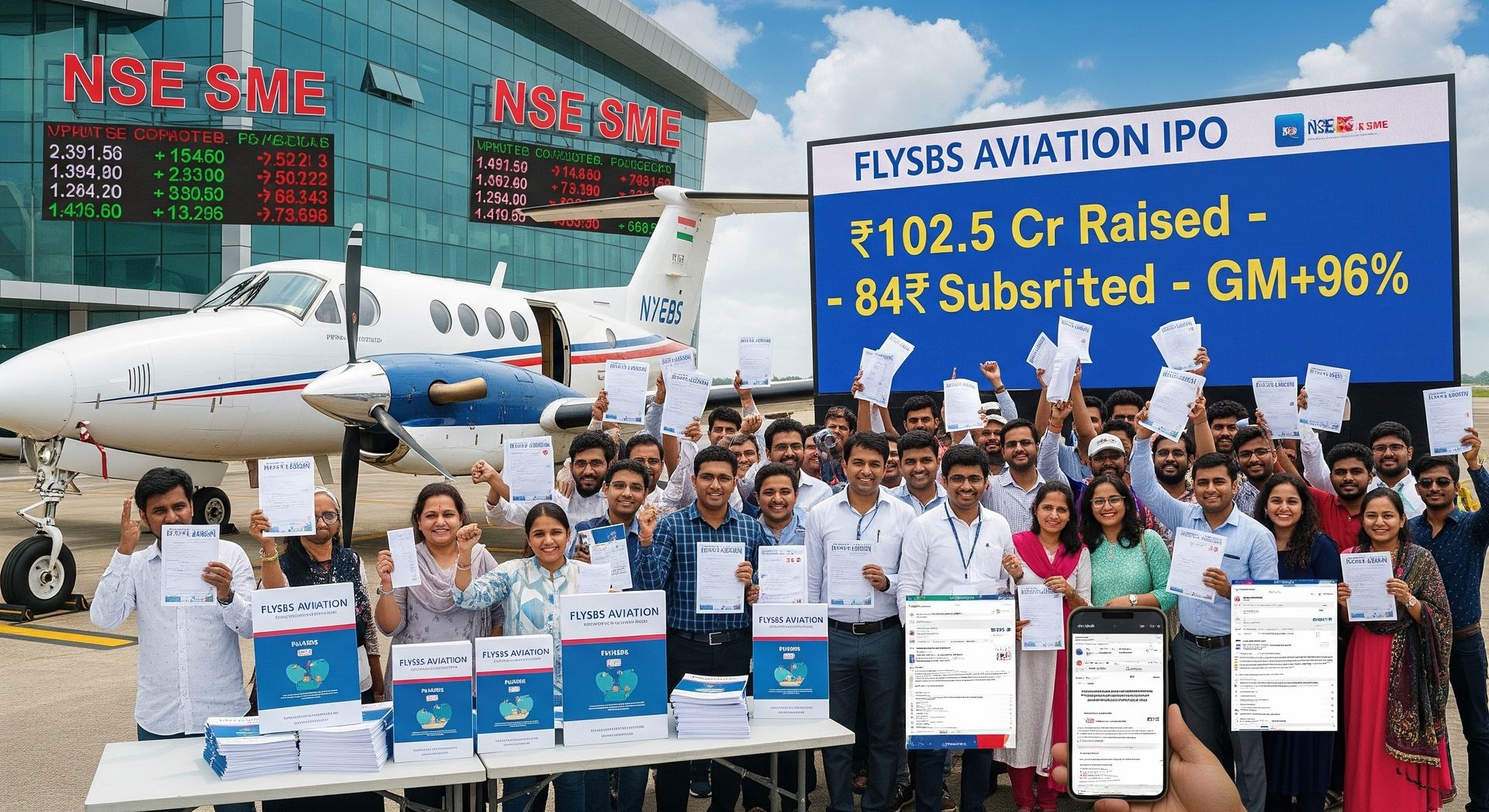 IPO response: Flysbs Aviation’s SME issue saw a staggering 84.5× subscription, collecting ~₹102.5 crore and indicating blockbuster demand.
