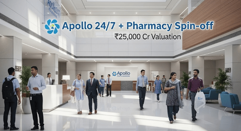Apollo Hospitals to Spin Off Digital-Health & Pharmacy Arm: Board approves de-merging Apollo 24/7 and omni-channel pharmacy units, valued near ₹25,000 cr, for listing within 18-21 months.