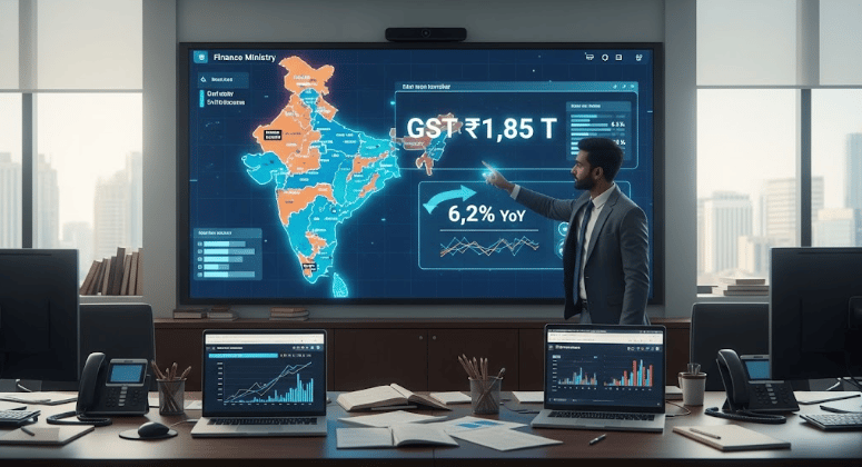June GST Collections Rise 6.2 % YoY to ₹1.85 Trn: GST receipts stayed above ₹1.8 trn for a fourth month, supporting FY-26 fiscal-deficit targets despite patchy industrial output.