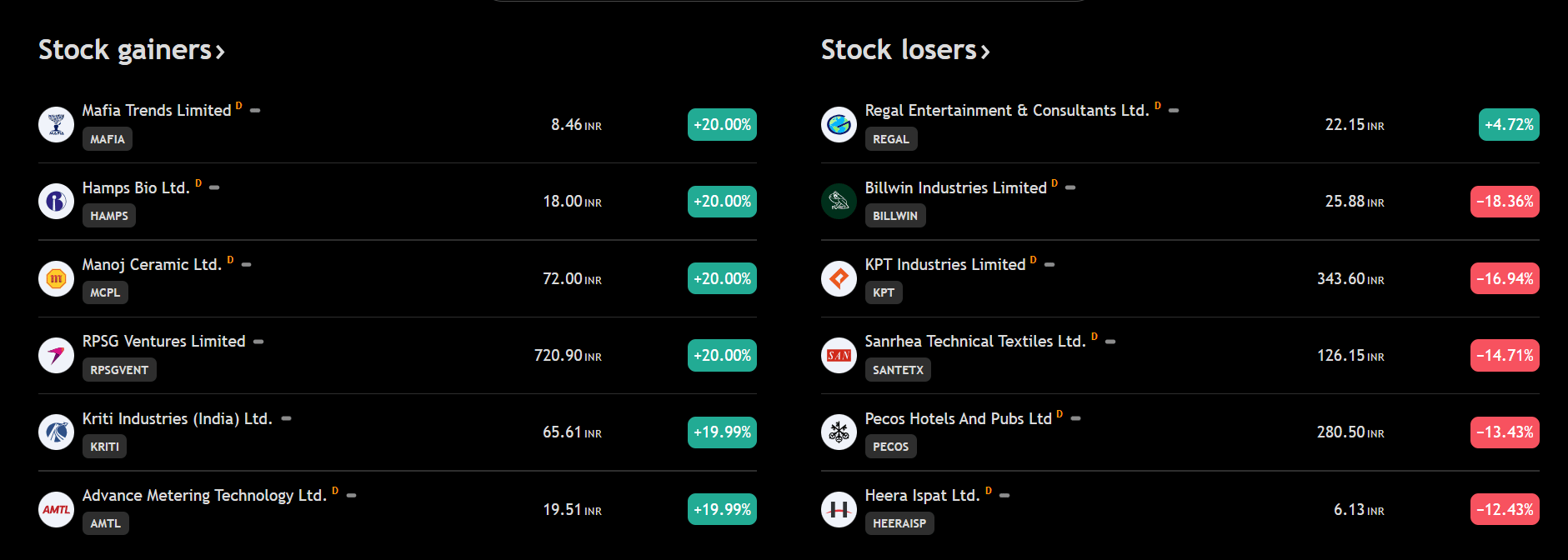 Top Gainers & Losers