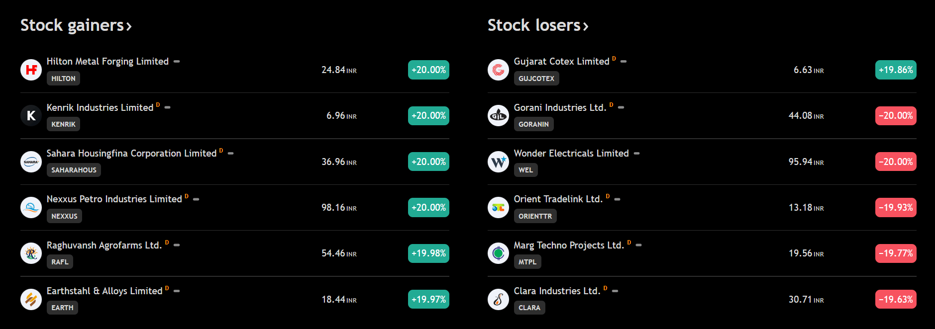 Top Gainers & Losers