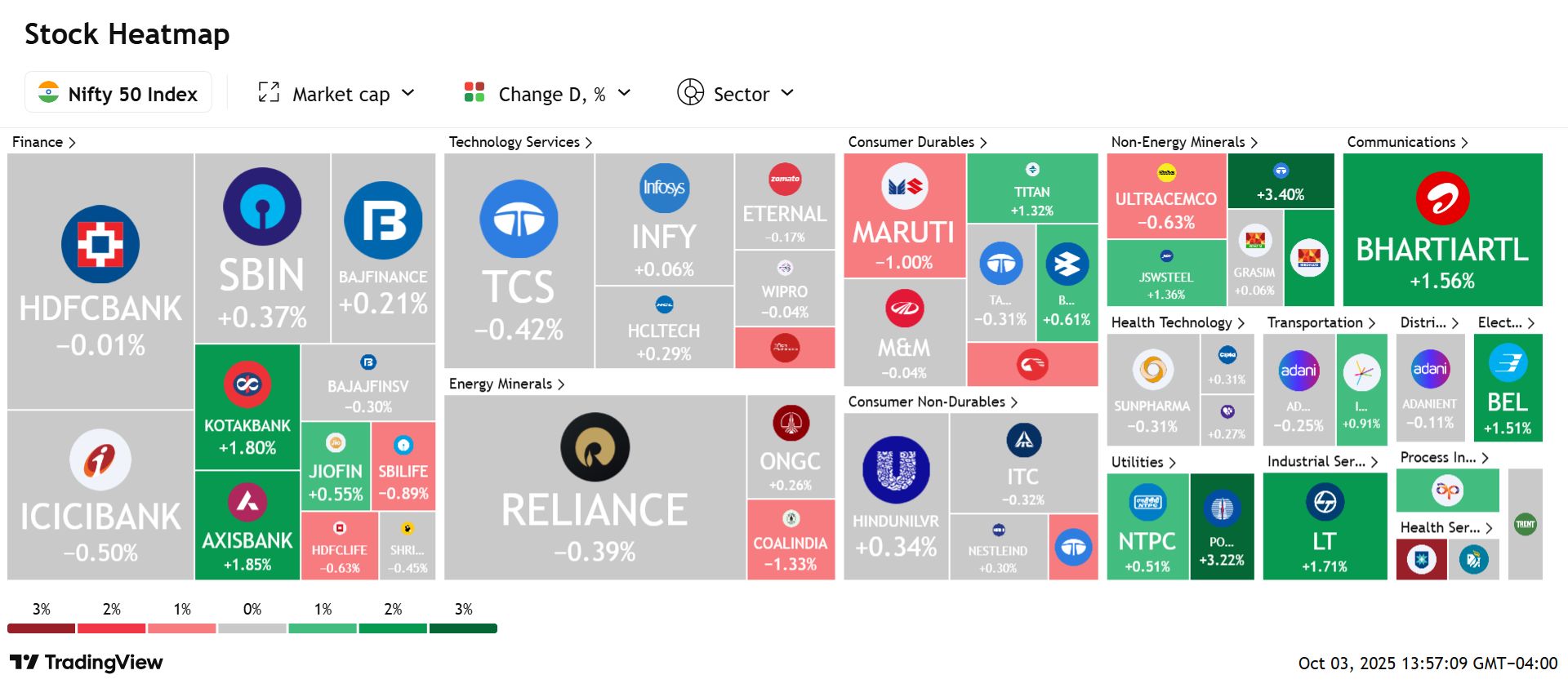Macro backdrop steady: RBI held policy on Oct 1 while sounding optionality for later easing; risk assets took it as a “pause, not pivot” cue.