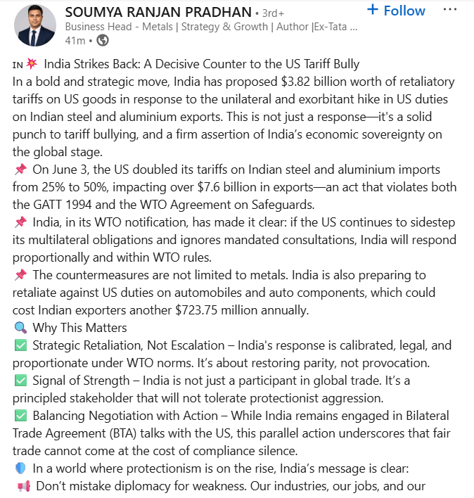 India Sends Trade Delegation to Washington: Officials resume talks on auto, steel and farm tariffs, seeking a deal before the 1 August deadline that could protect $2.9 billion in exports.