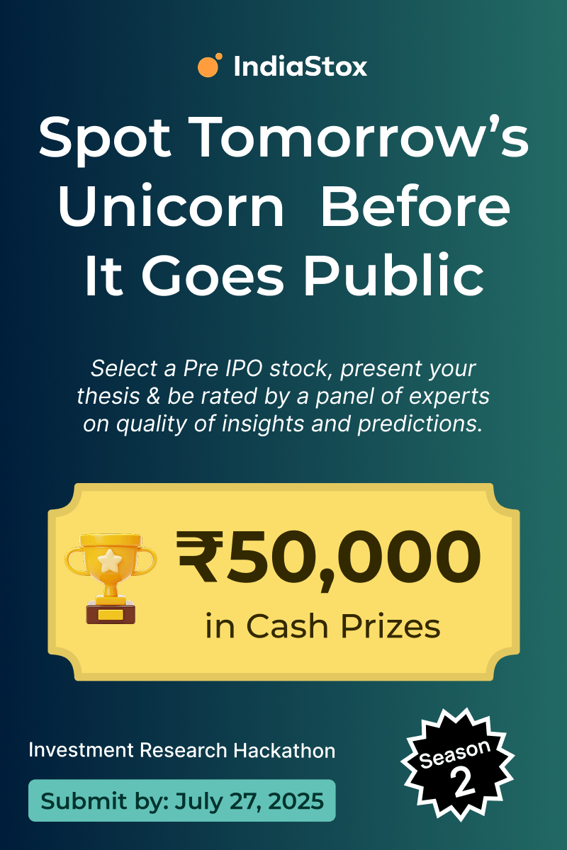 By participating in the IndiaStox Research Hackathon and submitting content, you grant IndiaStox a worldwide, royalty-free, perpetual, and irrevocable license to use, reproduce, modify, publish, distribute, and display your submission, whether in whole or in part, across its digital platforms and in promotional materials. This license extends to both commercial and non-commercial purposes, including content seeding, editorial use, and advertising.