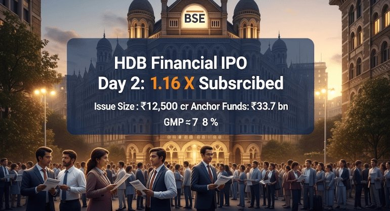 HDB Financial IPO Fully Subscribed on Day 2: HDB Financial’s ₹12,500-crore IPO reached 1.16 × subscription by Day 2, buoyed by anchor backing and strong non-institutional demand despite volatile markets. $HDFCBANK.NSE ( ▲ 0.3% )