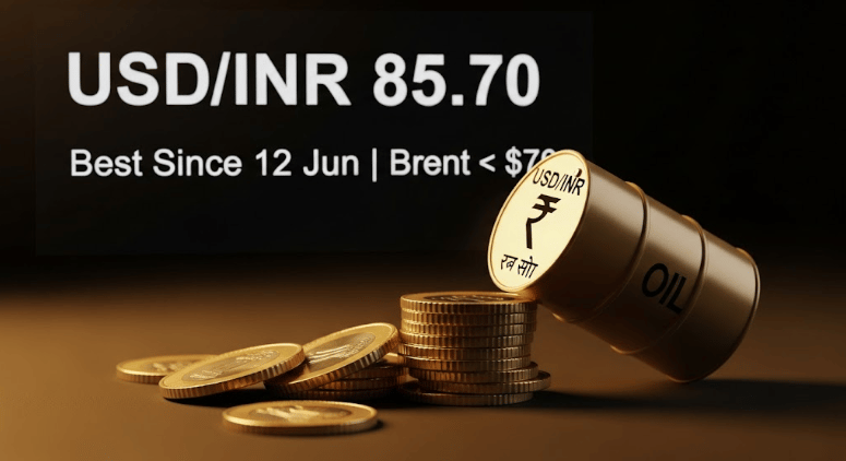 Rupee Rallies to ₹85.70 per USD, Best Since 12 June: The rupee appreciated 0.4 % to ₹85.70/$, its strongest level in two weeks, aided by sliding oil prices and a softer dollar ahead of Fed cuts. $INRUSD ( ▼ 0.37% )