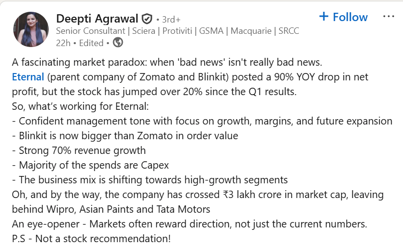 Financial update: Q1 sales grew 7.5 % year‑on‑year to ₹422.8 billion; management narrowed FY26 revenue outlook to 1–3 % from flat–3 %.