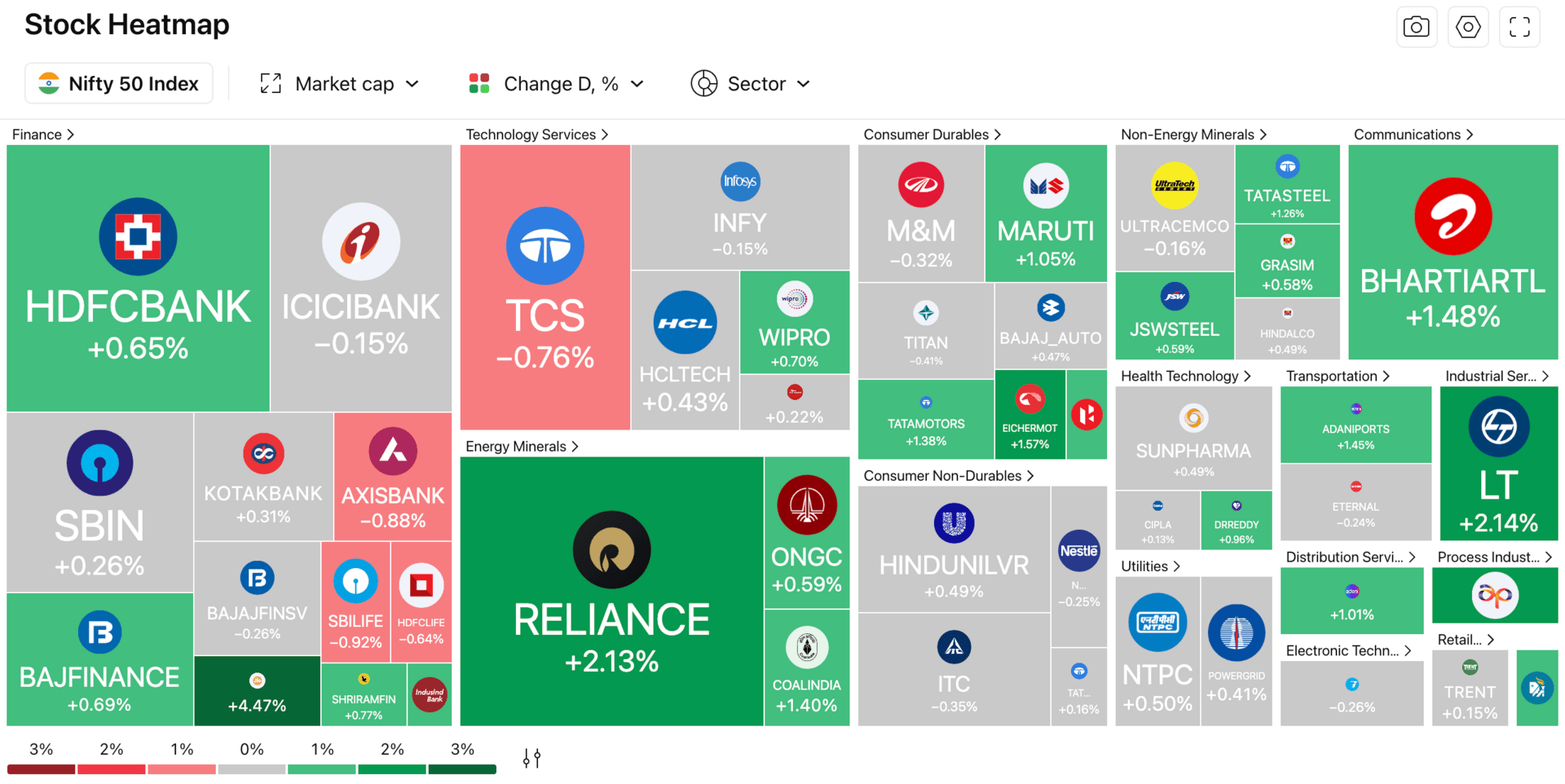 Blue-Chip Rebound: Buying in heavyweights like Reliance Industries, HDFC Bank, and Adani Power supported headline indices after recent weakness, signaling selective institutional interest.