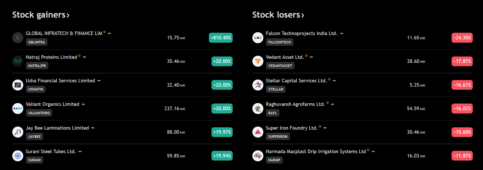 Top Gainers & Losers