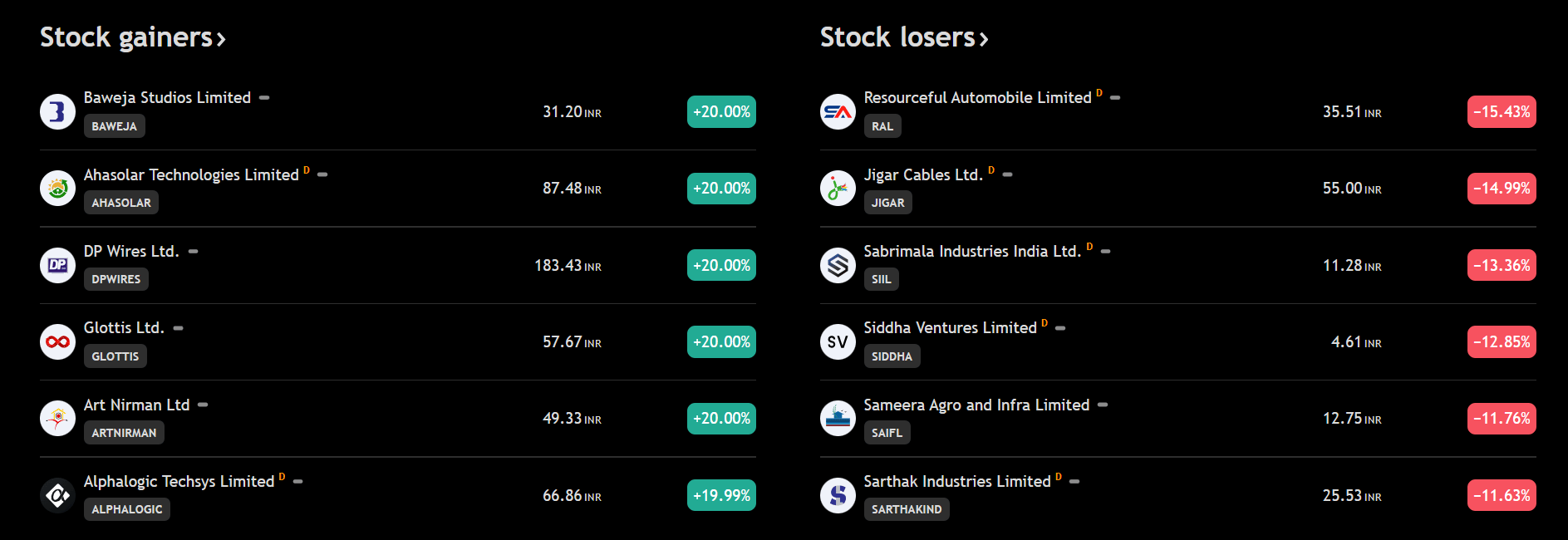 Top Gainers & Losers